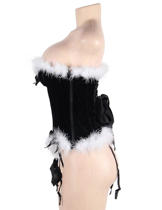 Plus Size Sexy Black Christmas Corset with Thong Materials : 100% Polyester Including : 1 Corset + 1 G String Package Type : 1pcsRegular price $50.88