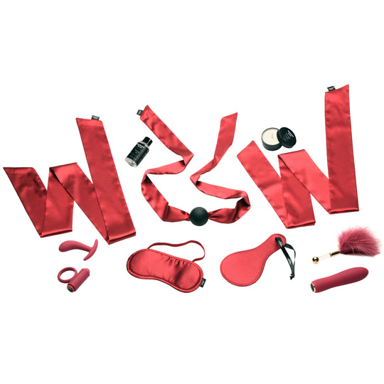 Everything you need to surprise your partner with the ultimate sensual experience! This bedroom Bliss Bondage massage Set includes 1 Satin Blindfold, 1 Satin Paddle, 2 Satin Restraints, 1 Silicone Ball Gag, 1 Silicone Butt Plug,...Regular price $169.95 -