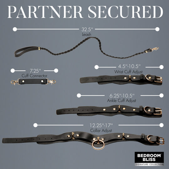 Indulge in guilt-free, high quality, vegan leather that looks like the real thing and feels amazing to wear! This set includes wrist cuffs, ankle cuffs, a collar with braided leash, and 2 cuff connectors. Wear it...Regular price $119.95 -