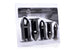 Measurements: From smallest to largest: 3.4 inches in length, 1 inch in diameter; 3.75 inches in length, 1.2 inches in diameter; 4.15 inches in length, 1.5 inches in diameter; 4.5 inches in length, 1.7 inches in diameter; 5 inches in length, 1.9 inches in diameter