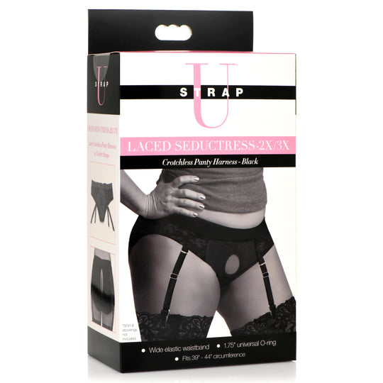 Laced Seductress Crotchless Panty Harness With Garter Straps