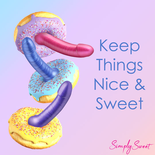 Curb your craving for satisfying penetration with this Simply Sweet dildo! The brilliant purple colors come in layers of different shades of color and metallic shimmer. Made out of platinum silicone, this body-safe, phthalate-free, silky smooth...Regular price $39.95 -