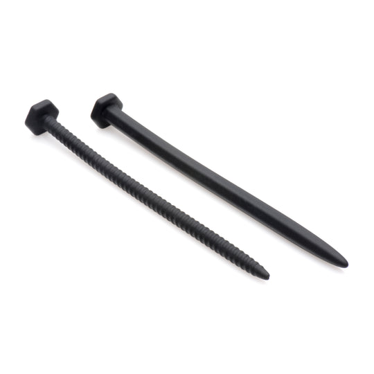 Two irresistible shapes for your penetrative pleasure! Both sounds are shaped like heavy-duty hardware, tempting you with a smooth, hexagonal nail and a spiral-textured screw. The flexibility and silkiness of the material ensures a comfortable insertion...Regular price $29.95 -