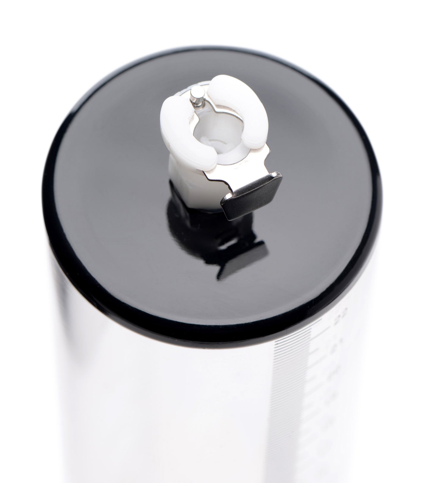 Pump things up! This Penis Pump Kit features a transparent 9 inch cylinder with measurement markings so you can track your progress with each pump. The wide lip base ensures a tight seal, while the flexible hose and quick release valve makes it easy to maneuver and release the pump when you're ready to play.