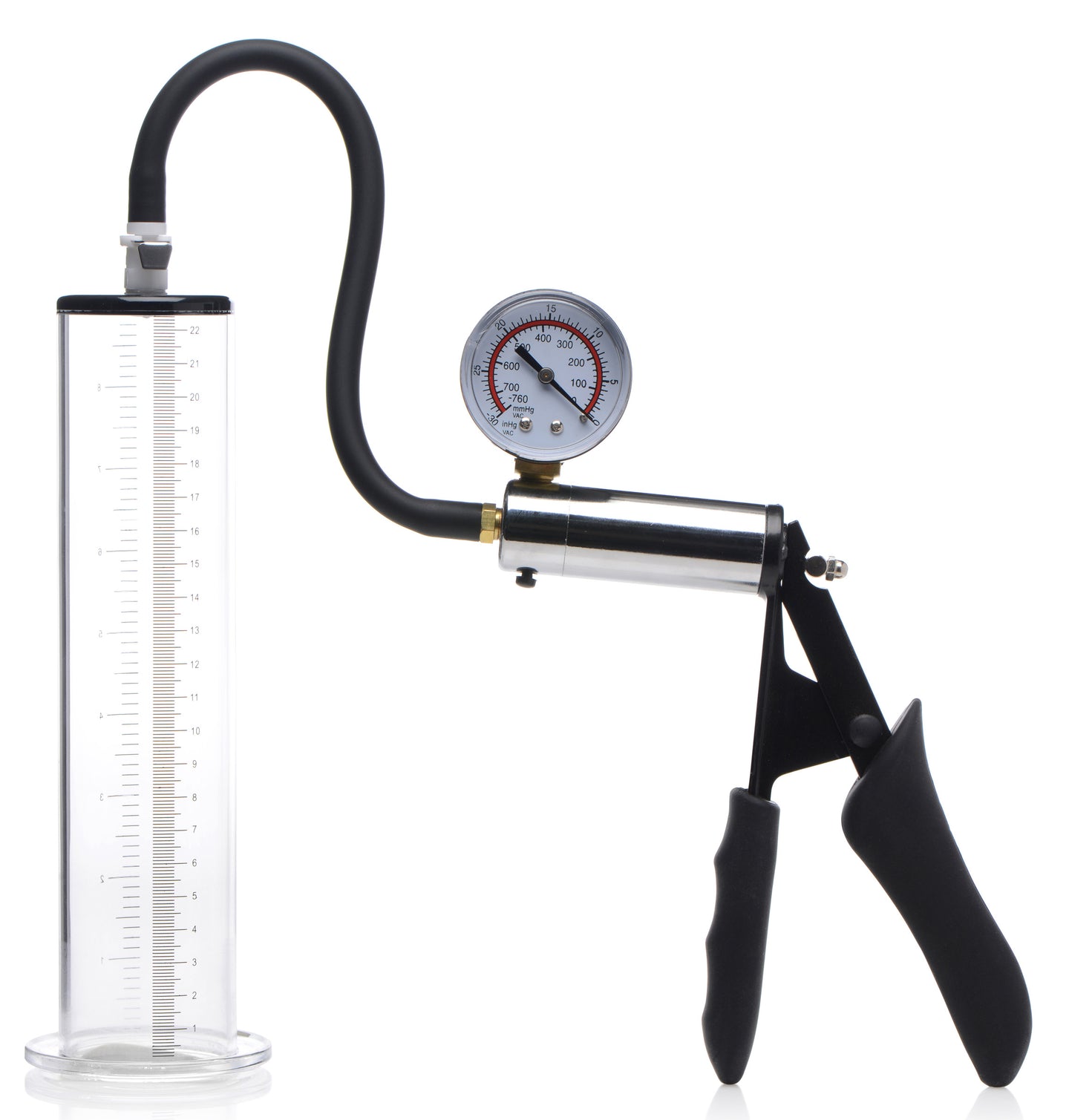 The ergonomic hand pump comes included with a large pressure gauge so you can find the amount of pressure works with yoour package best. This Pump Kit is perfect for those who want a more sensitive and long lasting erection - utilize your favorite cock ring to maintain your new pumped up shaft!