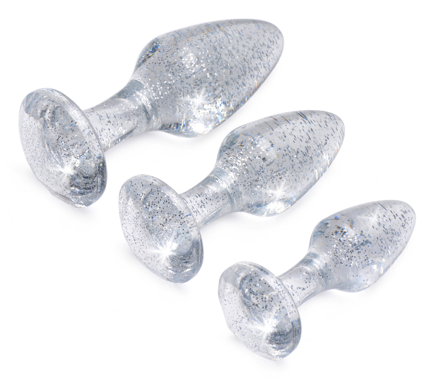 Expert anal players will appreciate the ease of which to warm up their ass for further fun with this Glittery set of plugs! Choose the size that matches your comfort level and surprise your lover when you pull your pants down with this dazzling anal gem!