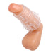 Give yourself some head room with this open ended penis enhancing girth sleeve. Just slip inside and enjoy an instant girth boost. Not only does it give you a thicker shaft, but it also offers incredible stimulation with its dual textured external sensation elements. Whether you choose to lead with the exciting studded side, or the incredible ribbing, your partner will love your new, enhanced shaft! The open ended design offers more sensation for the wearer, and an ideal fit on most any size. It even offers custom sizing with its cut to fit design. Just snip off however much you do not want, and get ready for incredible stimulation!